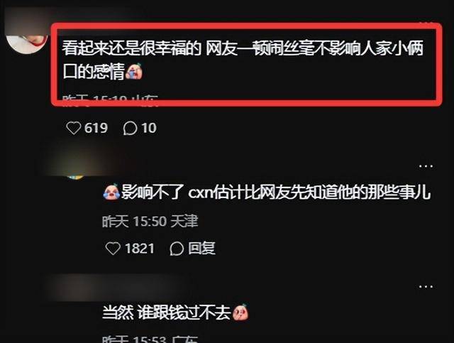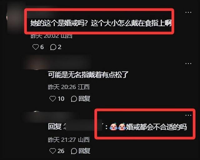 有网友说:“之前还刷到说他们感情不好的帖子,现在看明明就很恩爱啊,婚戒戴食指可能就是个人习惯而已,没必要想太多。”