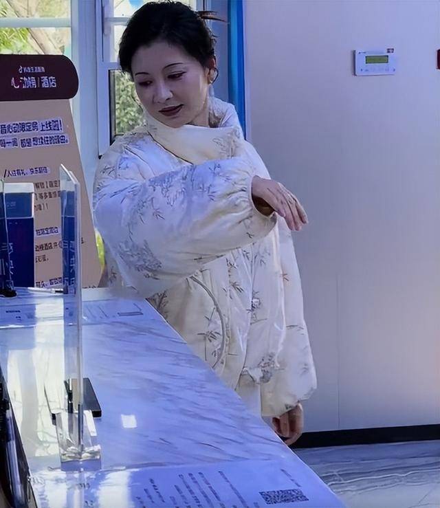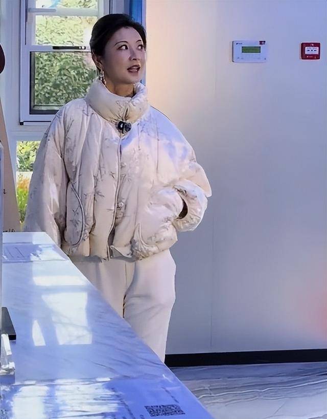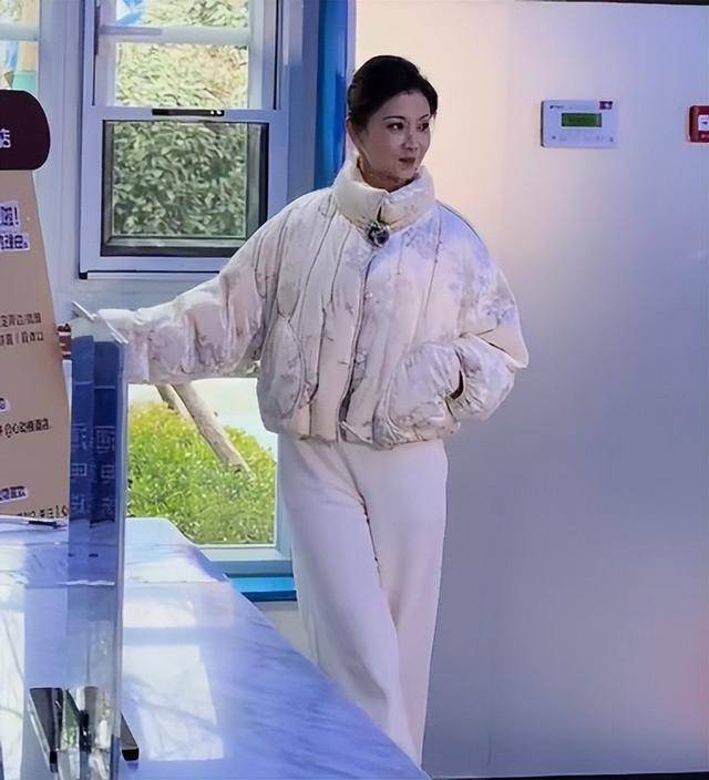 但是看了之后才知道,她完全没了剧中曾经的样子,穿一件印着竹子图案的白色棉服,搭同色系的白色裤子。