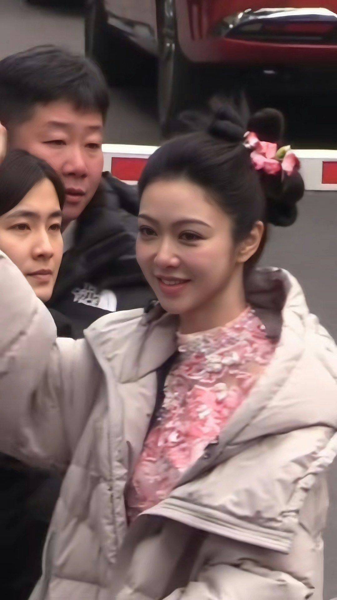 视频里的薛凱琪裹着米色厚羽绒服,发髻高盘,隐约露出粉红色中式旗袍的领口,古典气质扑面而来。她向现场粉丝挥手打招呼时,白皙肌肤在自然光下几乎看不见皱纹,状态好到让人惊叹。不少网友直呼:“我初中时她就长这样,现在我都35岁了,她怎么还是老样子?”