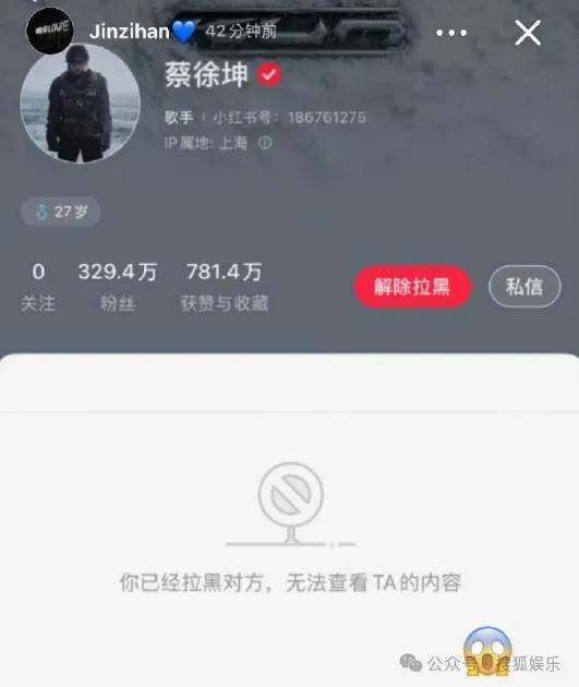 wok金子涵居然拉黑蔡徐坤了......