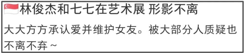 林俊杰官宣女友以来的槽点一个接一个,女友七七不怎么令粉丝满意,但最近他又带着七七一起现身艺术展,似乎是打算彻底的无视粉丝。