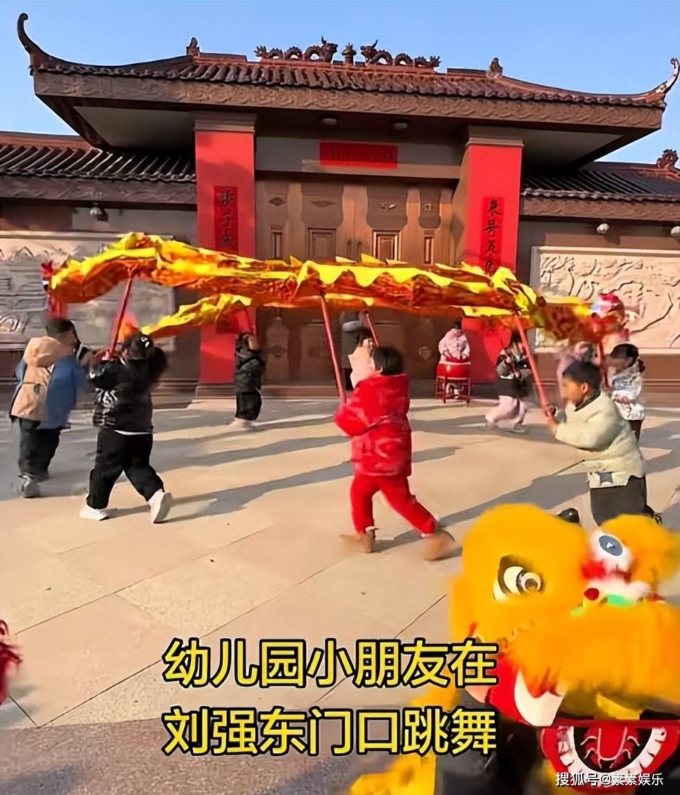 小孩子们在家长的带领下,跑到刘强东家的大门前玩起了舞龙,每一个人都特别开心。