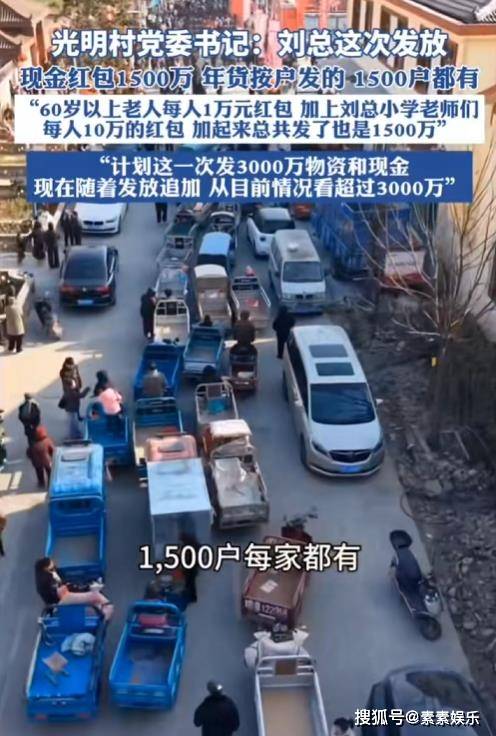 光明村的书记强调:刘总这次发放的现金红包是准备了1500万,年货也是按户准备的,1500多户,每一户都有。