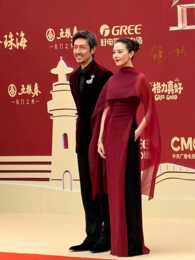 她一出场,就凭一身红裙,瞬间压住了全场的风头,霸气十足。高圆圆的红裙是缎面材质,质感十足,在灯光的照射下,泛着淡淡的光泽,显得高级又华贵。
