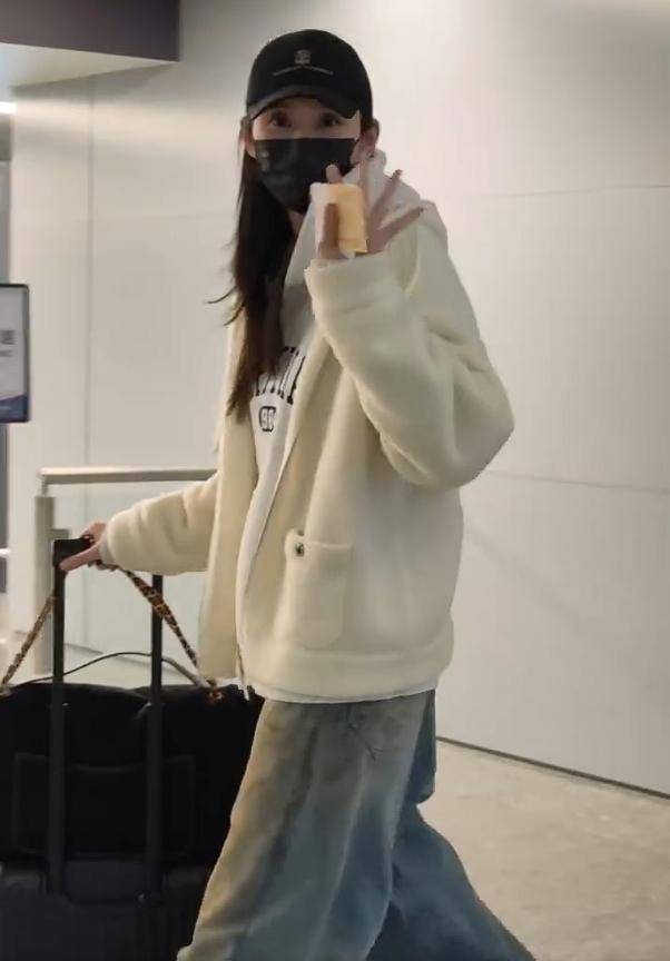 她头上戴了一顶黑色的针织帽,帽檐压得不算太低,搭配一个黑色的口罩,几乎遮住了大半张脸,只露出一双眼睛,眼神柔和,没有镜头前的疏离感。