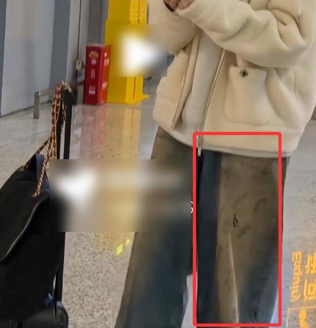 本来一身休闲穿搭没什么问题,可这条牛仔裤的大腿部位,居然沾了一圈油点子,特别明显。