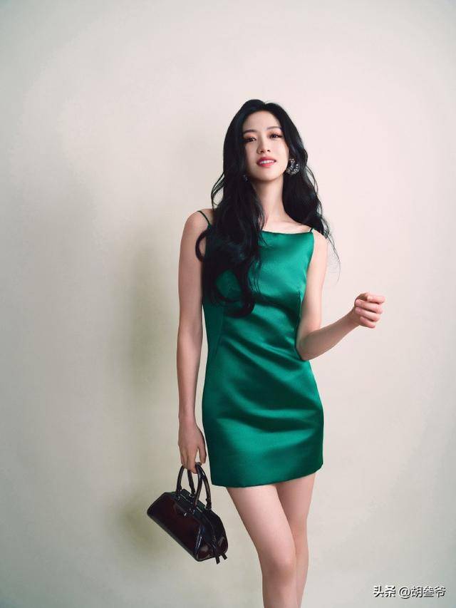 媒体直接给她的造型封了个 “美丽绿宝石” 的称号,确实,精修图中的她像从江南烟雨中走出来的青瓷佳人,清冷又优雅。