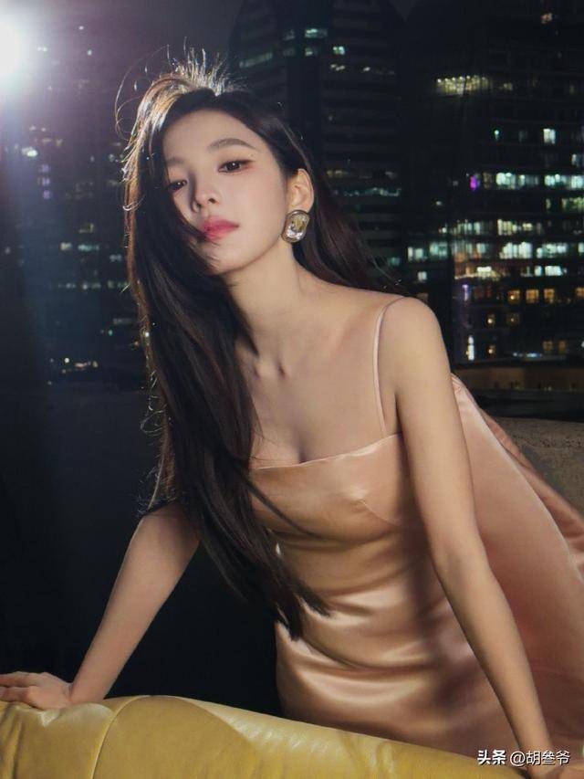 粉色抹胸长裙一上身,瞬间就成了全场焦点,柔雾粉的颜色衬得她肌肤胜雪,白得在镜头下几乎发光。