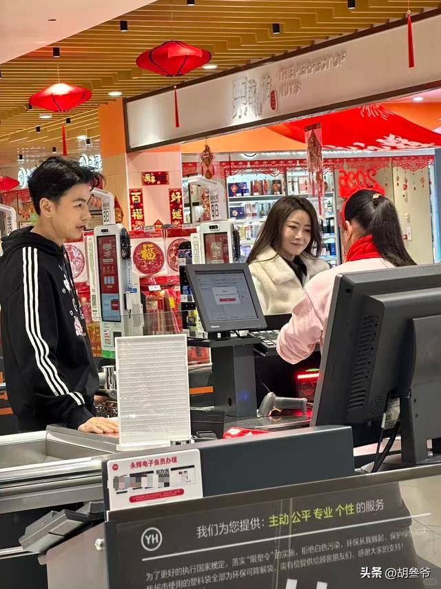 1月29日,杭州某超市里人来人往,年味正浓。陈紫函和戴向宇就像普通夫妻一样,在货架间穿梭挑选年货。陈紫函穿着舒适的羽绒外套,戴着帽子和框架眼镜,专注地看着商品标签。戴向宇则
