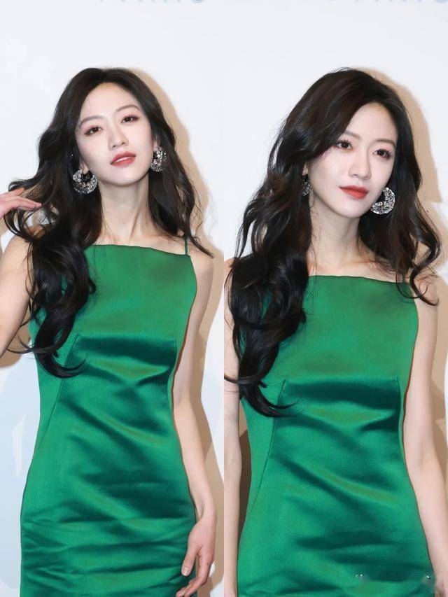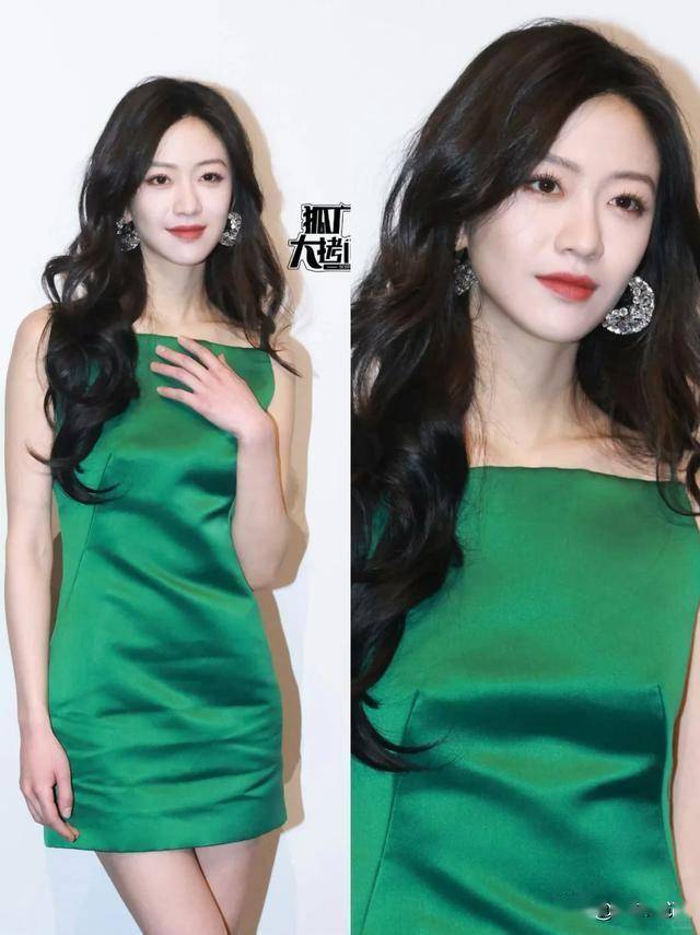 这次突然转型成熟风,还挑战这么亮眼的绿裙,反差简直不要太大。