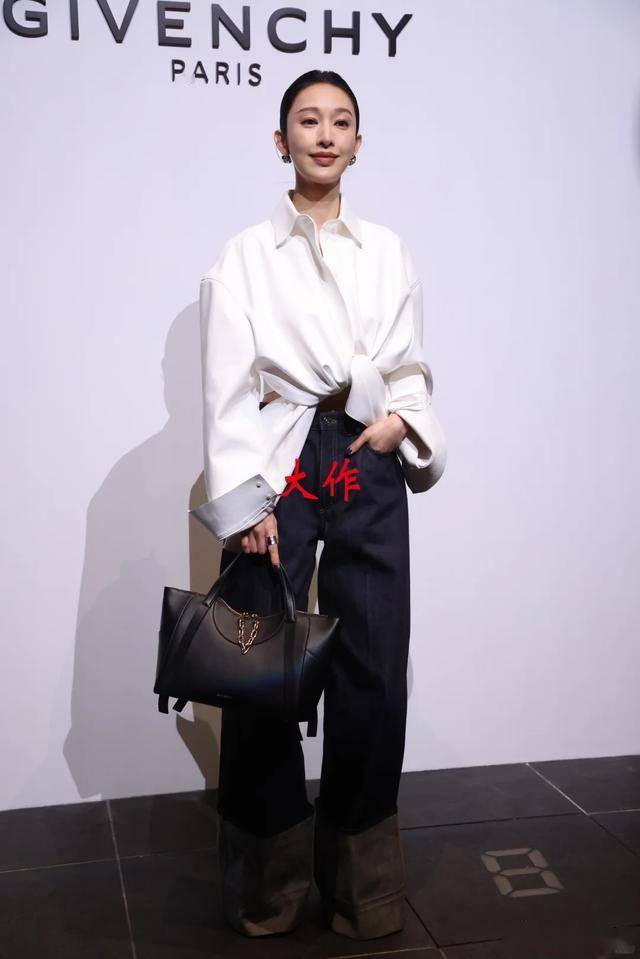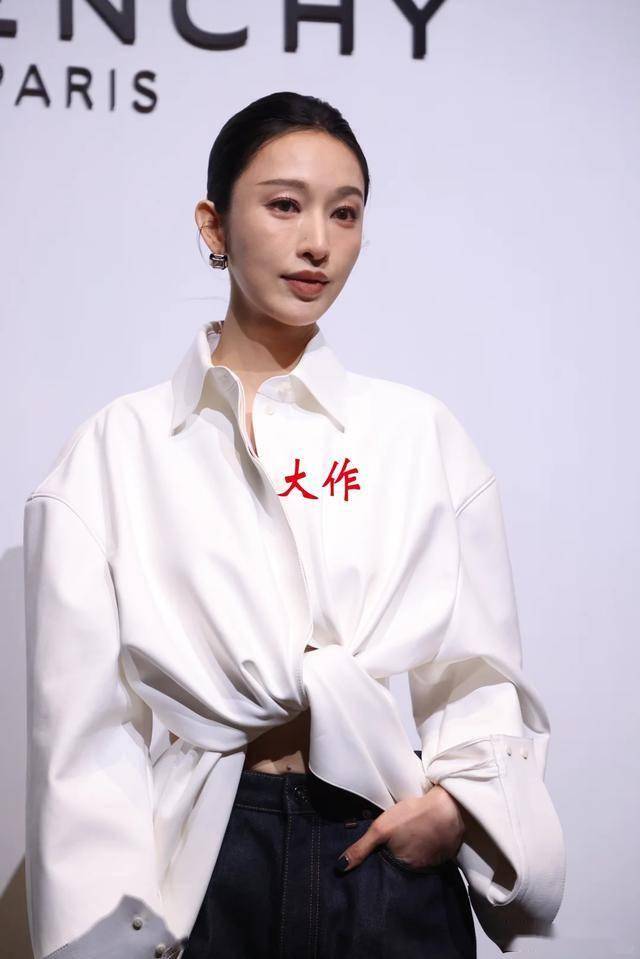 张俪这次选了一身宽松白衬衫搭配黑色长裤,走的是干练利落的路线,站在一众穿礼服的明星中间,反倒有种"万花丛中一点绿"的独特感。