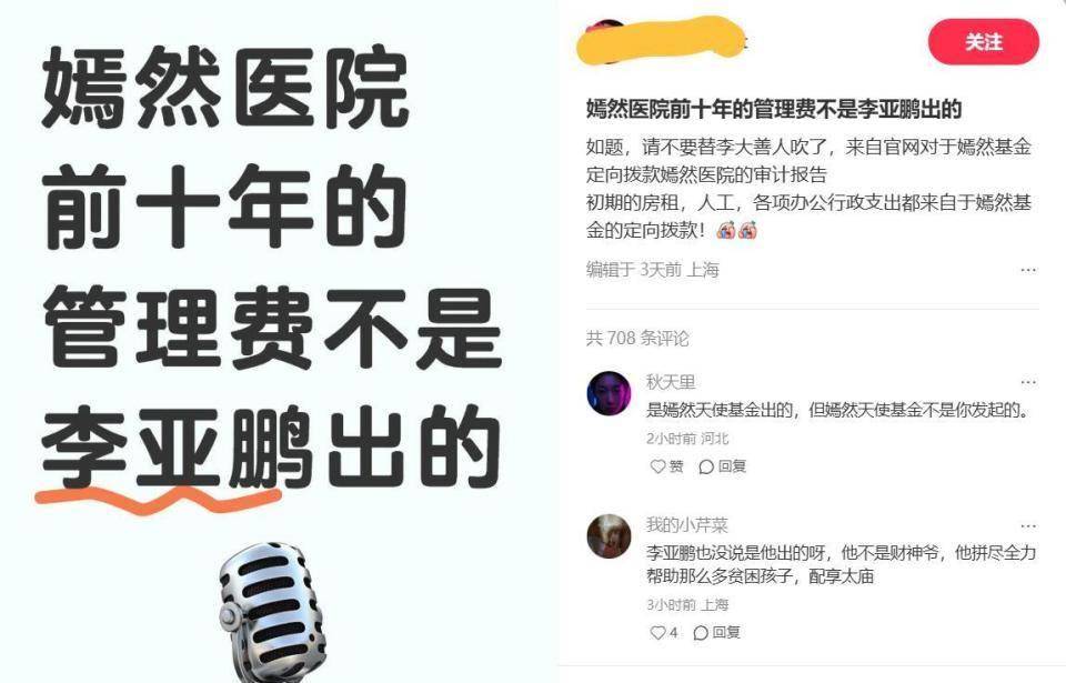 1月26日,某书一位博主突然抛出"猛料",标题直接点炮:"嫣然医院前十年的管理费不是李亚鹏出的"。