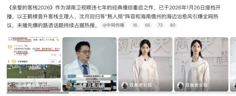 2026,“综艺新流量”来势汹汹。前有芒果把热剧CP放综艺里猛火翻炒,今年重启的《亲爱的客栈2026》还没播出就因为王鹤棣沈月“棣月系CP”和王鹤棣白鹿&ld