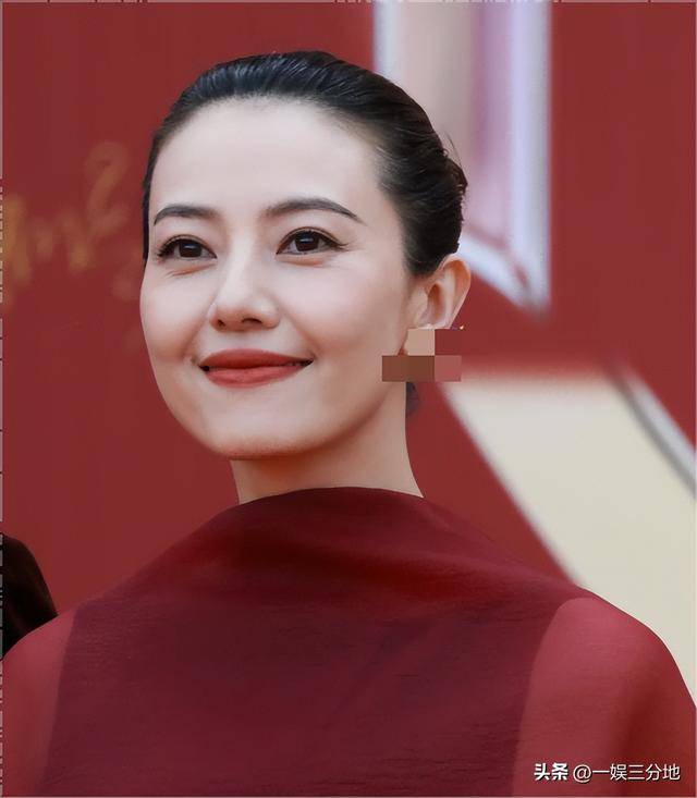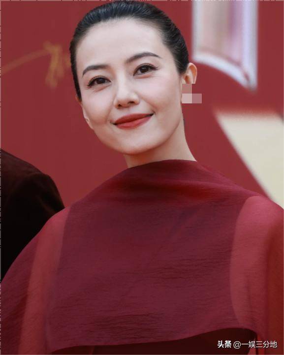 脸上的细纹一点也不显老,搭配着红唇透露着一股成熟的韵味。