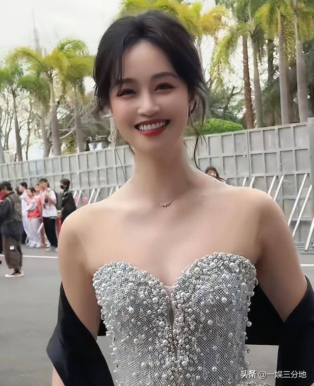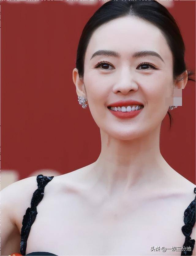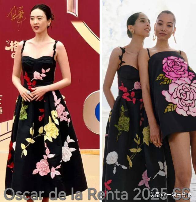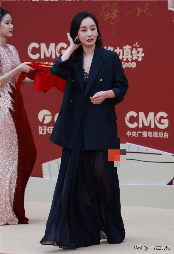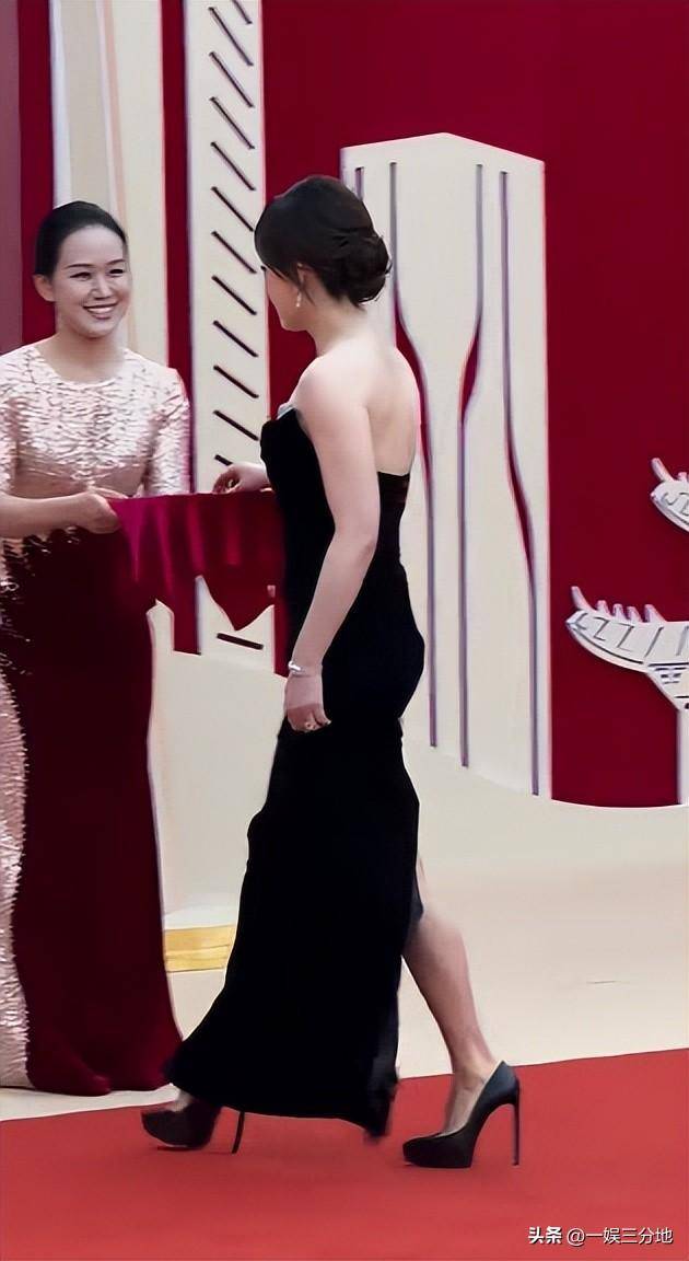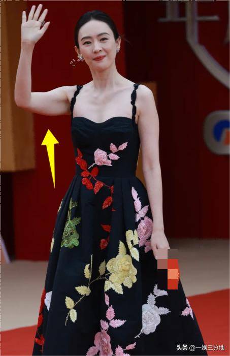 童谣在这次红毯上穿了一身高定礼服,黑色裙子上面花花绿绿的,身材一点曲线都没有。