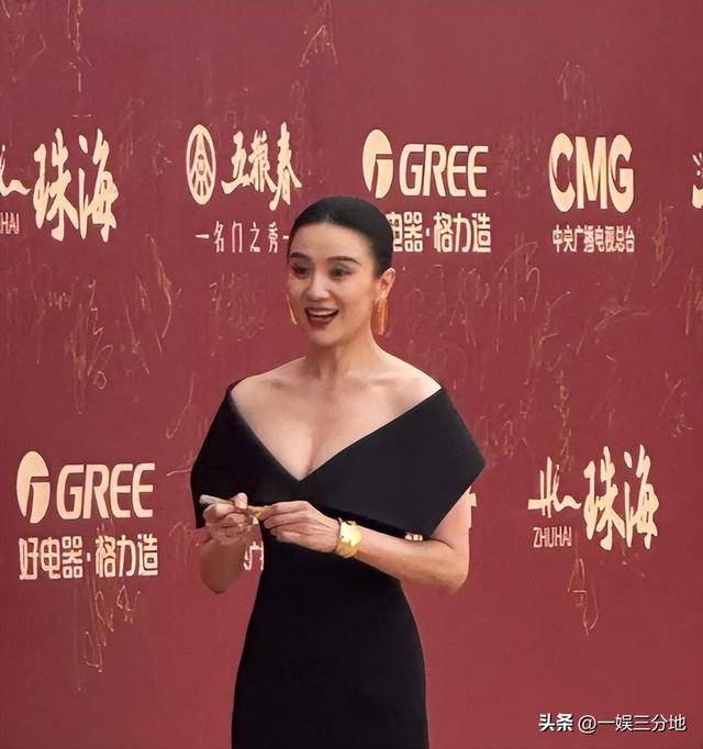 高圆圆这次穿的也很特别,黑色紧身裙外面搭了一层红色的纱。