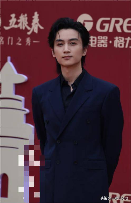 而张鲁一则是暗红色的西装前面还别了一个胸针,简直就是点睛之笔。