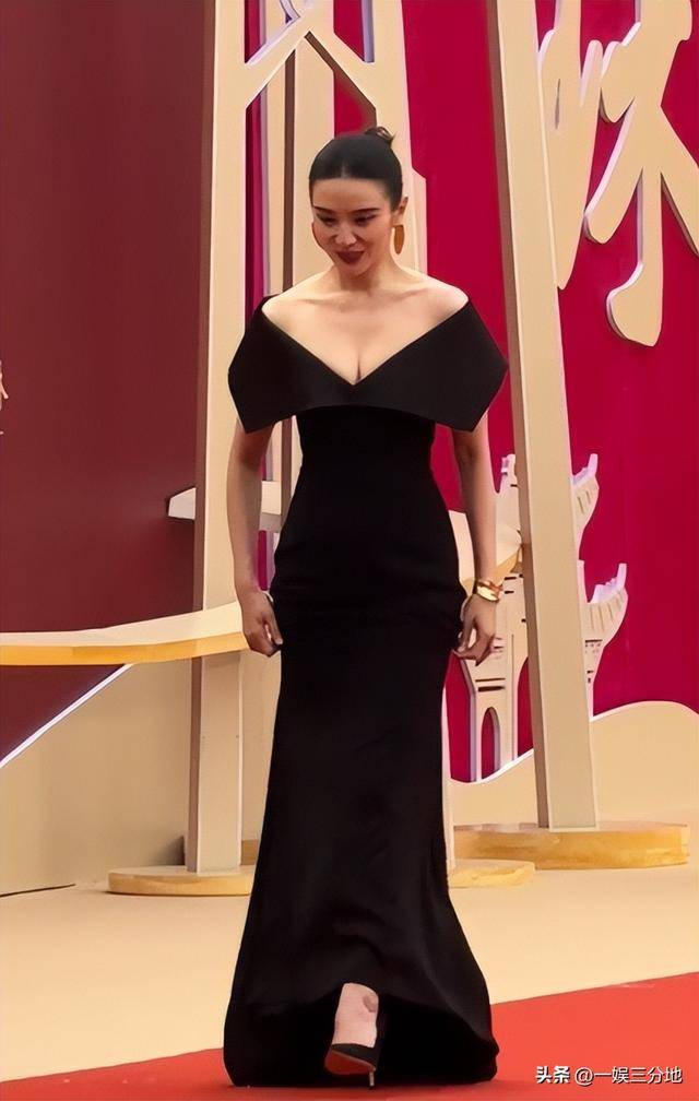 这次红毯压轴的是孙俪,他穿着一条黑色的露肩长裙,只有胸前那一块是白色的,头发和平常一样,感觉没什么特点。