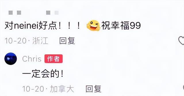 2025年10月,有网友发现NeiNei在社交平台公开艾特了一个昵称叫“Chris”的男生,还有网友在男方主页留言“对NeiNei好点,祝幸福99”。