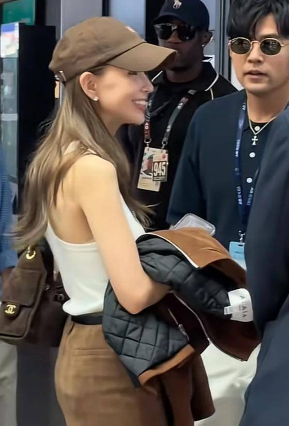 昆凌当天的穿搭特别亮眼,一件白色背心搭配短裙,脚下踩着一双长筒靴,头上戴着一顶棕色的帽子,既时尚又干练。
