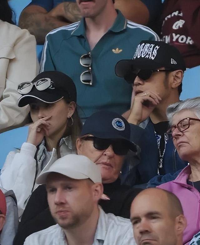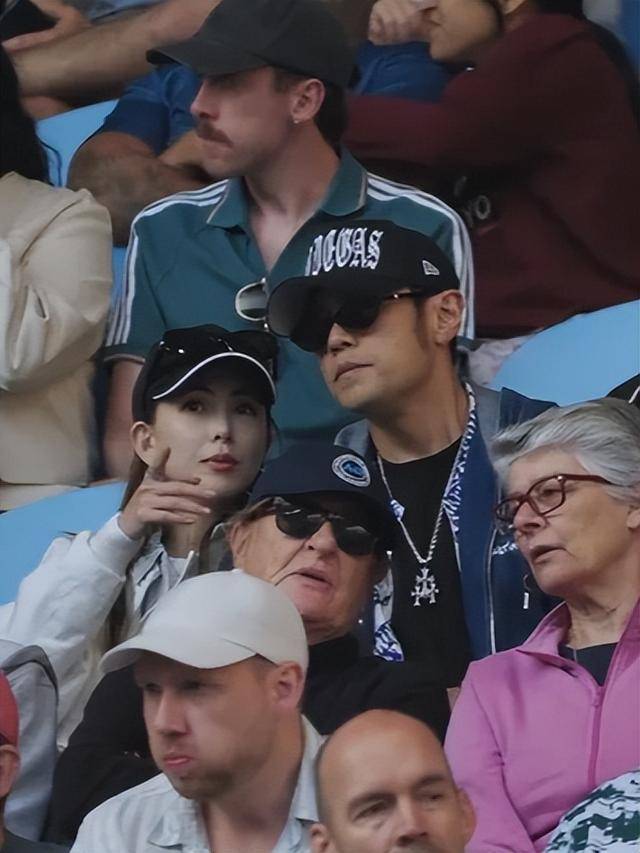和陈奕迅的狂热形成鲜明对比的,就是坐在他旁边的周杰伦,全程淡定得像是来“打卡”而非看球。