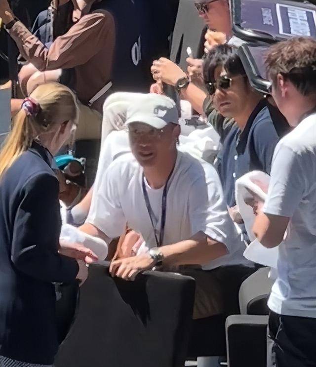 平时在舞台上沉稳又有气场的歌神,到了澳网现场彻底卸下了偶像包袱,变成了最投入的普通观众。