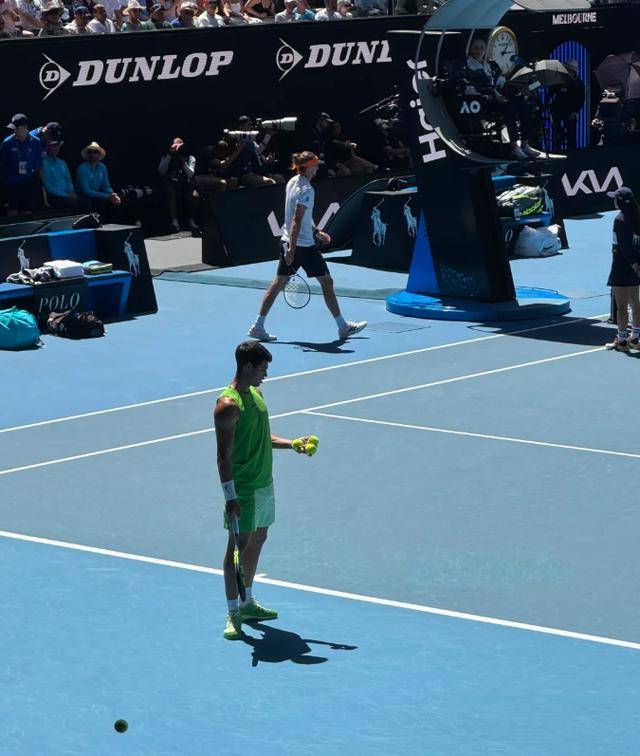 当天澳网男单半决赛正打得火热,阿尔卡拉斯和兹维列夫的巅峰对决吸引了全场目光。