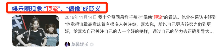 这种绑架式认同的背后,藏着饭圈的三重畸形心理。首先是集体话术洁癖,饭圈将“拒绝顶流”打造成政治正确,把路人的无心之言上升到否定偶像努力的高度,仿佛统一了话术,就能真的抹去偶像的流量标签。