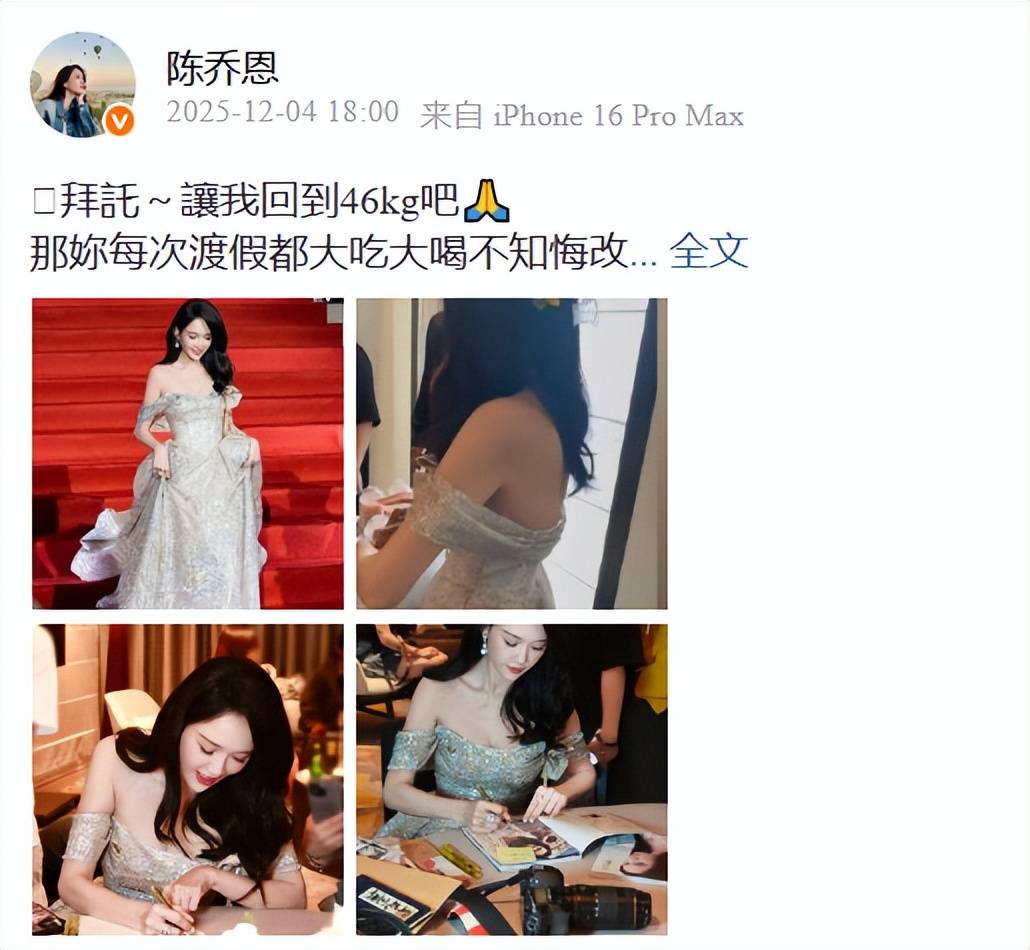 最近的陈乔恩行程排得很满,拍摄、活动轮着来,但她也没忘记和粉丝报备近况。前几天她在社交平台轻松打卡:“营业啦,没有偷懒,拍完要去大吃一顿。”一句话就把吃货属性暴露无遗。