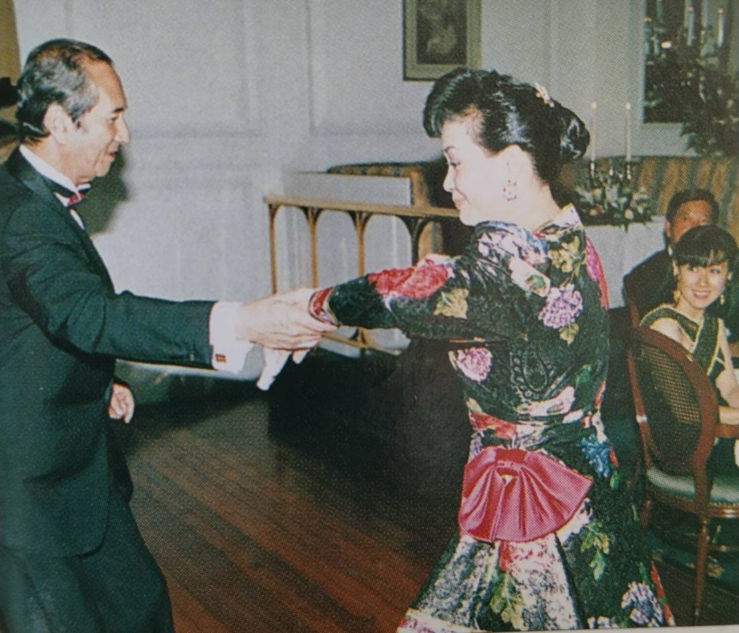 何鸿燊与蓝琼缨站在父母的身后,那时候的蓝琼缨很年轻,也很漂亮,没有中年之后的盛气凌人,反而显得亲切。蓝琼缨留着那个年代最时髦的发型,穿着立领的大花连身裙,状态好得令人羡慕。从照片可见,蓝琼缨在年轻的时候就是一个大美人,也难怪何鸿燊会看上她。当时的蓝琼缨上有老,下有小,三代同堂,而且丈夫也最宠爱她,真的就是妥妥的人生赢家。除了这张二房当时的全家福之外,还有一张何鸿燊与蓝琼缨共舞的照片被曝光,不过那又是另一番景象了,那时候的何鸿燊已经老去,蓝琼缨也中年了,两人翩翩起舞,仍然显得很恩爱。