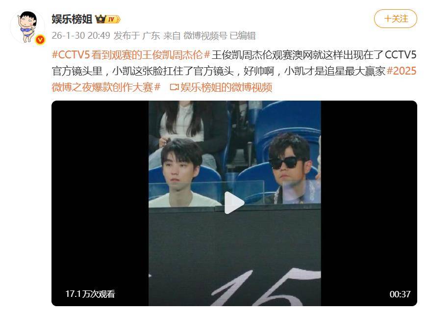 一场顶尖的网球对决,却因为观众席上的一个镜头彻底“跑偏”,成了网友们的狂欢现场。1月30日,CCTV5直播澳网男单半决赛时,镜头意外捕捉到王俊凯与周杰伦并肩观赛并专注交流的画面,这波“破次元壁”的同框瞬间点燃全网,被网友封为“追星天花板”的现实演绎。