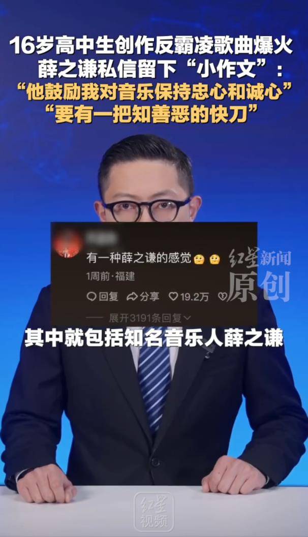 据1月31日报道,一首名为《玻璃》的反霸凌歌曲在全网炸开,创作者只是一位16岁的高中生。但让这件事从“少年才华”升级为社会议题的,却是明星薛之谦的一波“超规格”操作——他不仅主动发去千字私信“小作文”,更与这位高中生实现了微博“双向互关”。这已不再是简单的偶像鼓励粉丝,更像是一把“快刀”,精准劈开了流量时代最需要被看见的角落。