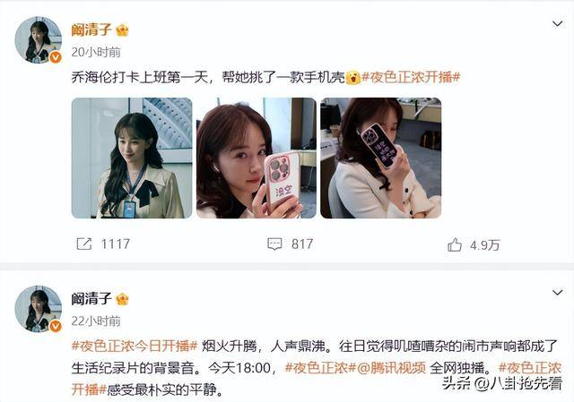 除了第一次发日常照片,这几天还在积极宣传新剧,有人觉得她用事业回应争议,状态好就是最好的辟谣。