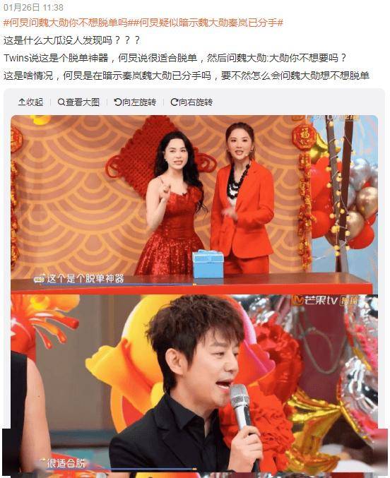 但两人也不止一次被传分手,直至最近的一场综艺录制中,何炅在面对一个“脱单神器”时忽然问魏大勋:“你不想要吗?”