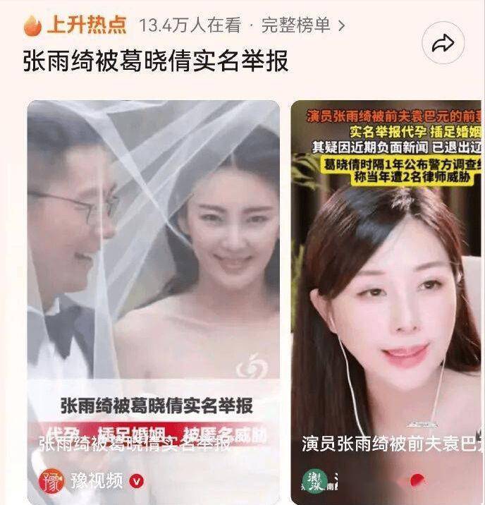 而在此事引发争议前,自 1月24日后便常驻热搜的是因被前夫的前任葛晓倩实名举报代yun、插足的张雨绮。