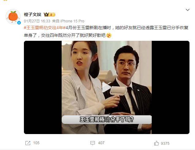 目前因《突然的喜欢》热播,而收割无数热度的“95花”王玉雯,再度被狗仔曝出,确实已与相恋5年的男友杨玏分手。