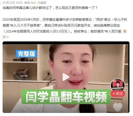 毕竟对于年收入才几万的普通牛马,闫学晶的傲慢显露无遗,其言论也被外界挂上“哭穷式炫富”的标签。