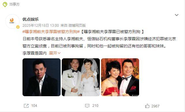 直至忽然遭遇账号被封,网友也并没有太过意外,再联想到去年年底其“富豪”前夫李厚霖因经济犯罪被刑拘,导致引发了更多猜想。