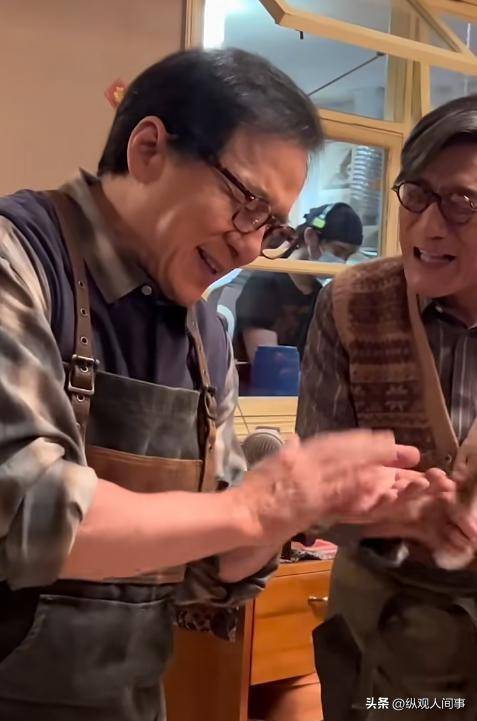 原来视频里快闪的片场片段,正是两人合作《捕风捉影》时拍的,当时成龙还在片场教梁家辉打戏动作,如今倒要反过来学自拍。