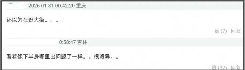 而仔细看刘雯走路的动作,似乎还像“跛脚”走路,下半身看着不太自然,特别是左脚,脚似乎不敢落地,走起来别别扭扭。