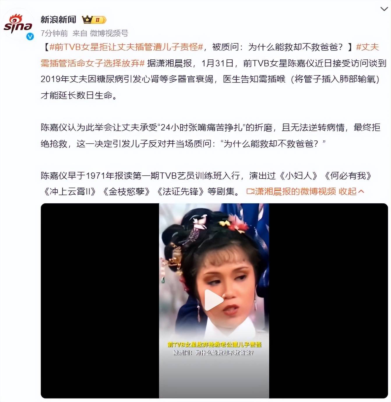当医疗决策从冰冷的病历本蔓延至家庭的餐桌,一场关于生死、痛苦与亲情的战争便悄然打响。前TVB女星陈嘉仪近日在访谈中披露,2019年丈夫因糖尿病引发心肾等多器官衰竭,医生告知需通过“插喉”(将管子插入肺部输氧)才能勉强延长数日生命。面对这道选择题,79岁的她颤抖着签下“拒绝抢救”,却换来儿子的当场质问:“为什么能救却不救爸爸?”这道裂痕,至今未能愈合。
