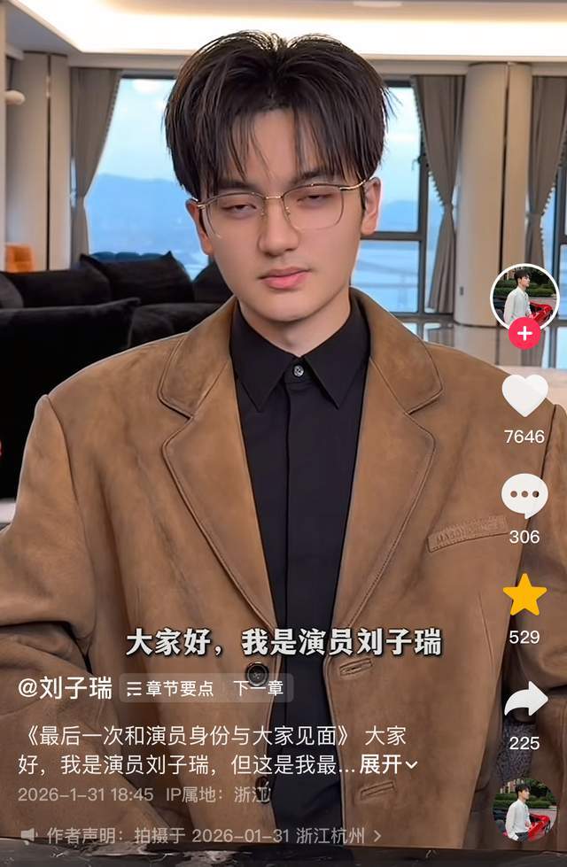 动态中,刘子瑞以《最后一次以演员身份与大家见面》为标题,展开叙述,包括自己的出道日期以及出演的作品等等。