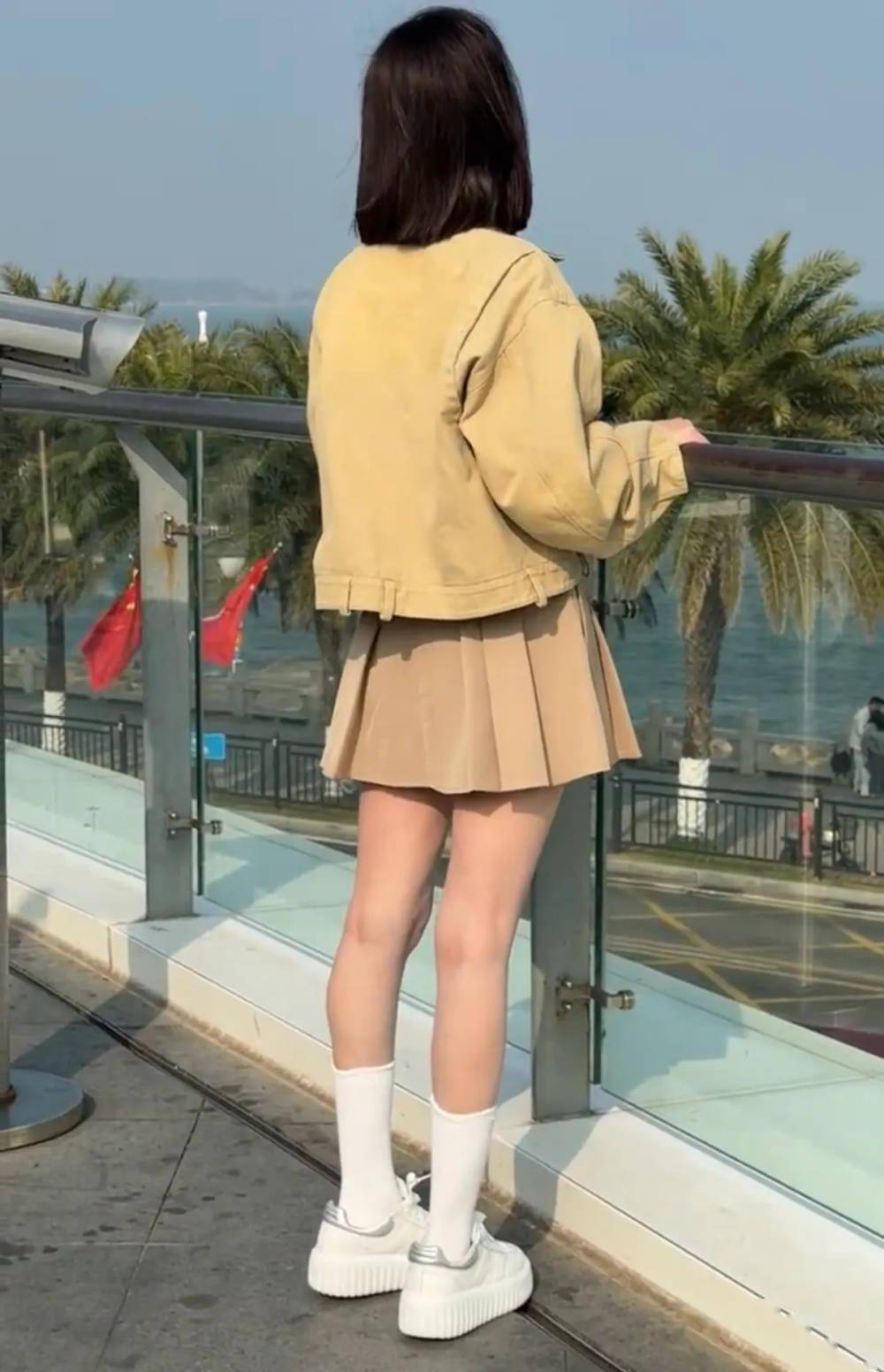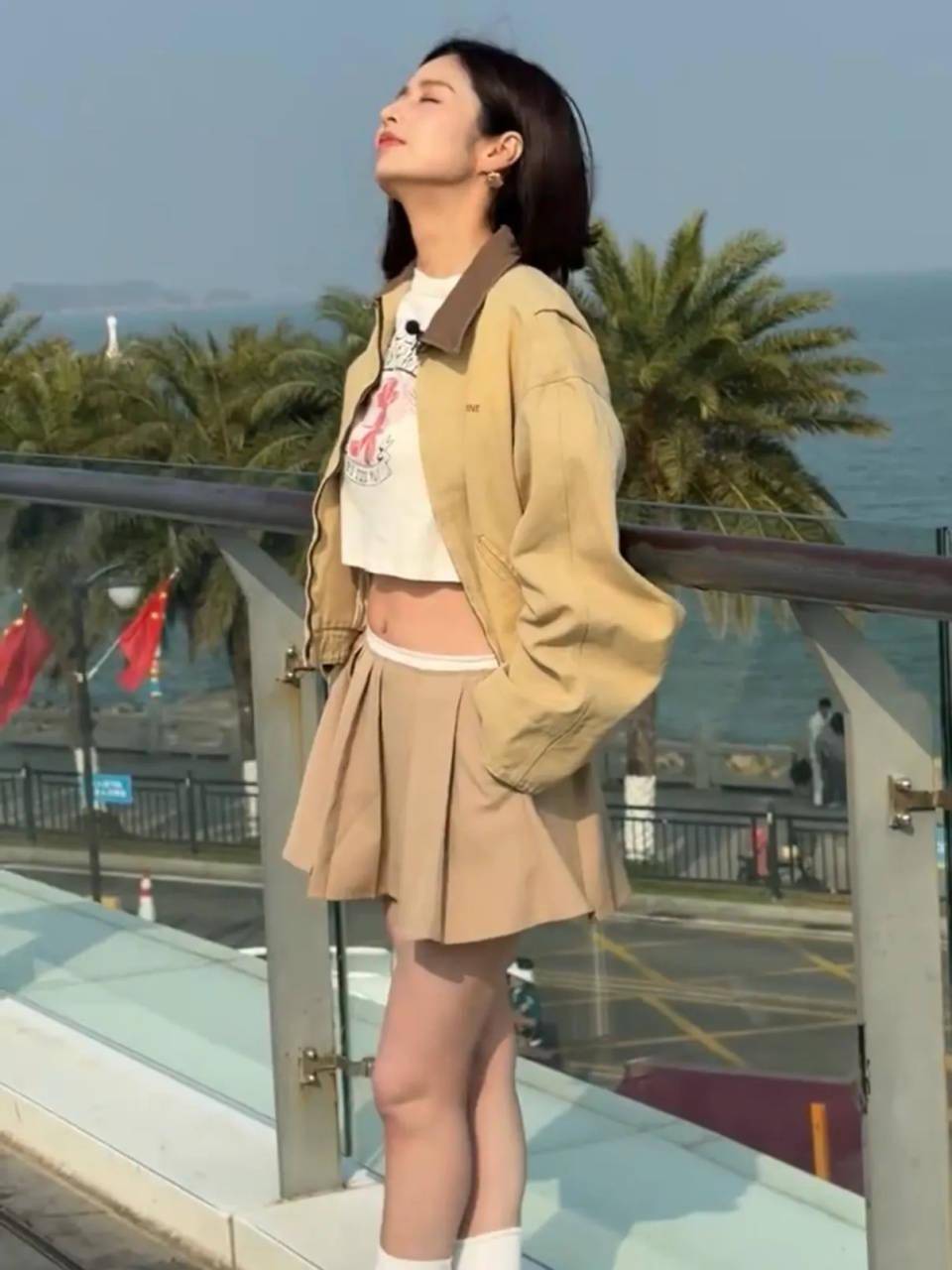 近日,有网友晒出在珠海街头偶遇颖儿参加活动的路透照片,颖儿身穿露脐上衣搭配短裙,大秀纤细蛮腰和修长美腿,身材状态看起来很有少女感。照片中,颖儿身穿卡其色外套和百褶短裙,搭