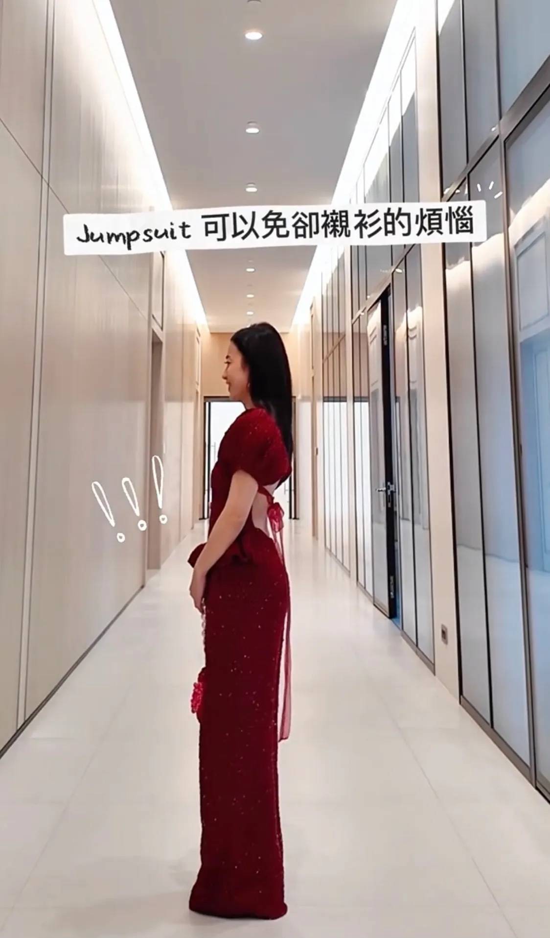 马上就是春节了,这样一件红色露背连体裤,穿起来惊艳又大方,实在太高级了。