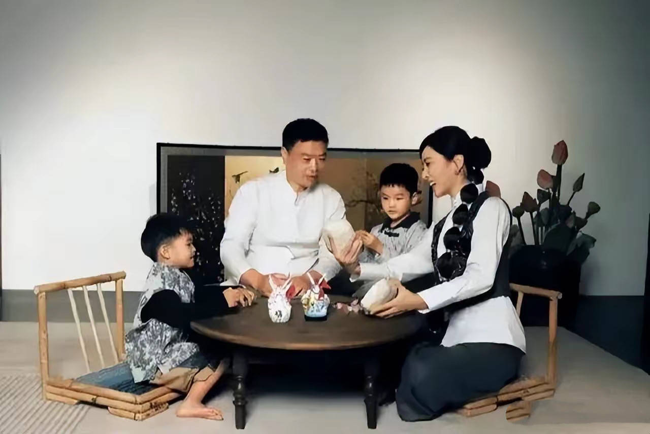 其实李思思也曾晒出过一家四口的全家福,她挽着头发、穿白色衬衫、黑色马甲,看起来温柔娴静。