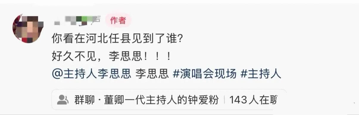 在河北任县,有网友看到了李思思。以前只能在电视里看到的美女主持人,就这么明晃晃的出现在小县城里。