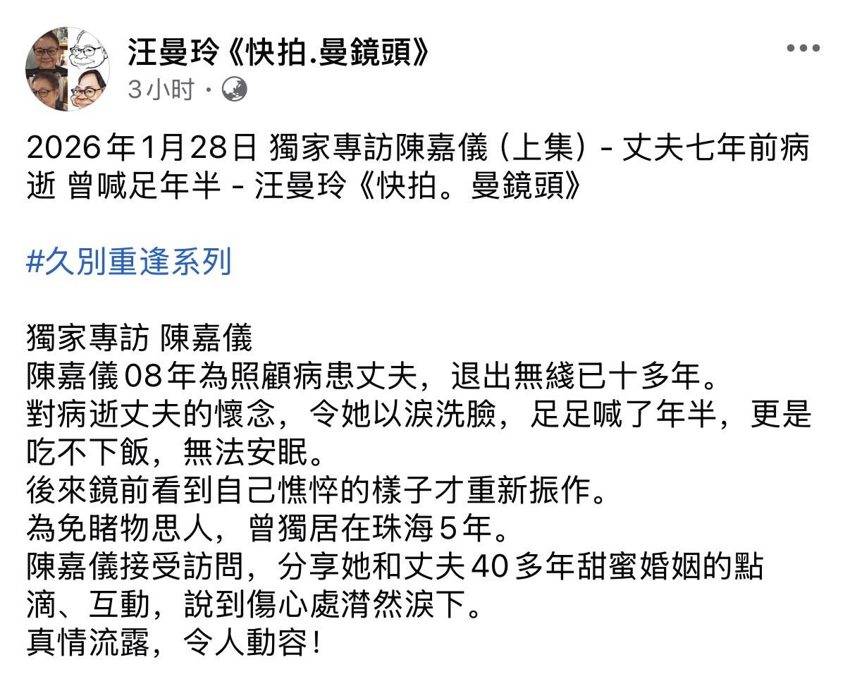 陈嘉仪因为回香港,逐渐活跃了,所以接受了香港资深媒体人汪曼玲的访问,大方地公开了个人近况。汪曼玲称一直想邀约陈嘉仪做访问,因为太久没有见到她,不过一直很难约,直到近期才成事。而透过访问才知道陈嘉仪在离巢TVB这些年,发生了不少的事情,从而改变了人生的轨道,最令人意外的是,她竟然搬到珠海去独居了五年。