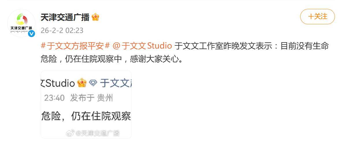 2月1日晚,一则“于文文演唱会晕倒”的消息瞬间冲上热搜,现场视频里她突然倒下的画面让全网心都揪了起来。直到深夜23:40,工作室终于发文报平安,确认“目前没有生命危险,仍在住院观察”,这才让无数悬着的心暂时落了地。