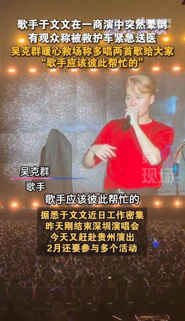 意外发生后,同场演出的歌手吴克群临时救场,加唱两首歌曲稳定观众情绪,这一暖心举动被网友点赞“展现了圈内人的担当”。然而,救场能解一时之困,却解不开公众对艺人工作强度的长期质疑。