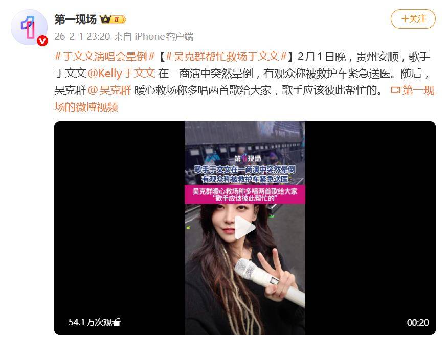 2月1日晚,贵州安顺一场低温户外商演现场,上演了惊心又暖心的一幕。歌手于文文在演唱中途突然晕倒失去意识,被担架抬离紧急送医,而随后同台歌手吴克群的举动,则让这场意外收获了